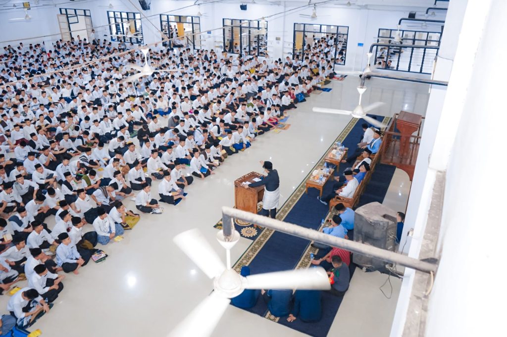 Suasana Pesantren Ar-Raudlatul Hasanah dipenuhi semangat antusiasme dari para santri ketika Wali Kota Medan, Rico Tri Putra Bayu Waas memberikan motivasi dihadapan seribuan santri.
