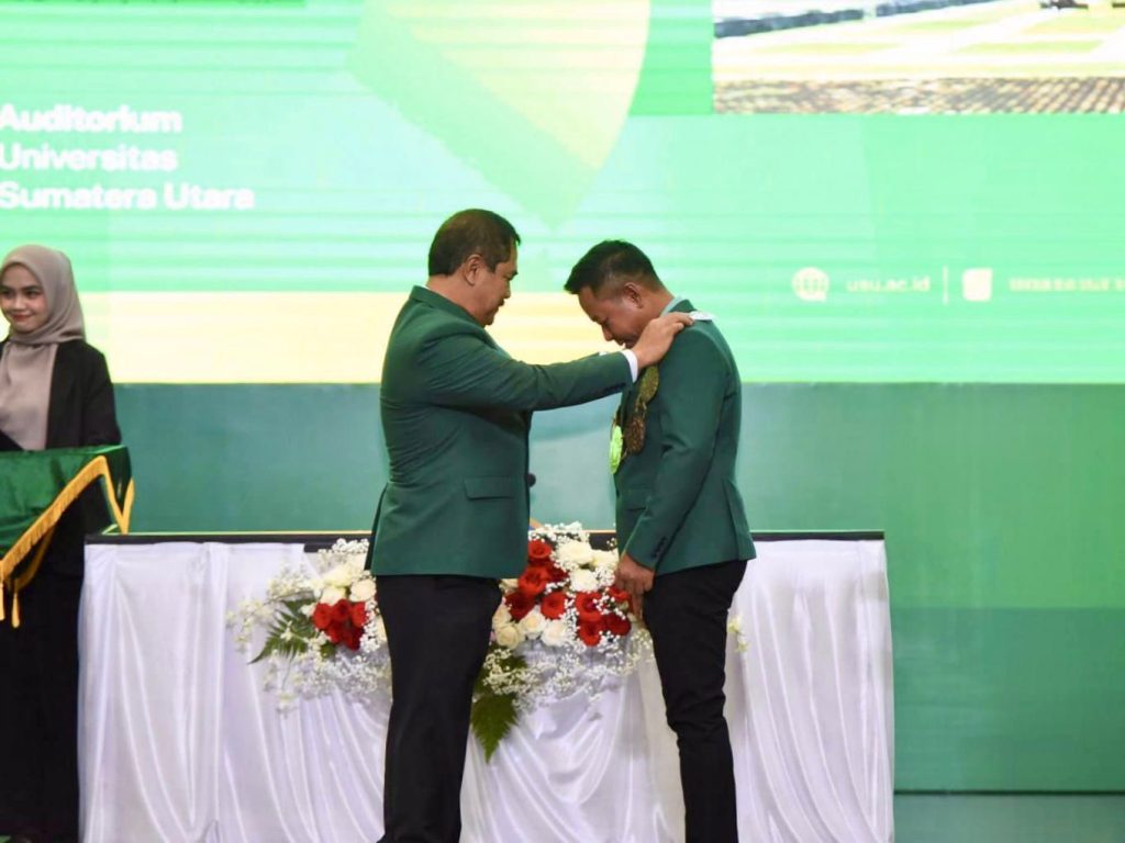 “Pada lap ke-2 arena sirkuit berikutnya di tahun 2026-2031, mari kita secara bersama-sama memanfaatkan momentum perubahan dunia ini sebagai kawah candradimuka untuk kita bertransformasi, memanfaatkan semua kekuatan yang ada, membangun Indonesia inkorporasi untuk menjadi champions di hiper kompetisi. Niat dan kerja keras kita, bukan hanya untuk membangun Universitas Sumatera Utara, tetapi kita juga membangun Negara Pancasila, Merah Putih, dan NKRI,” tandas Muryanto.