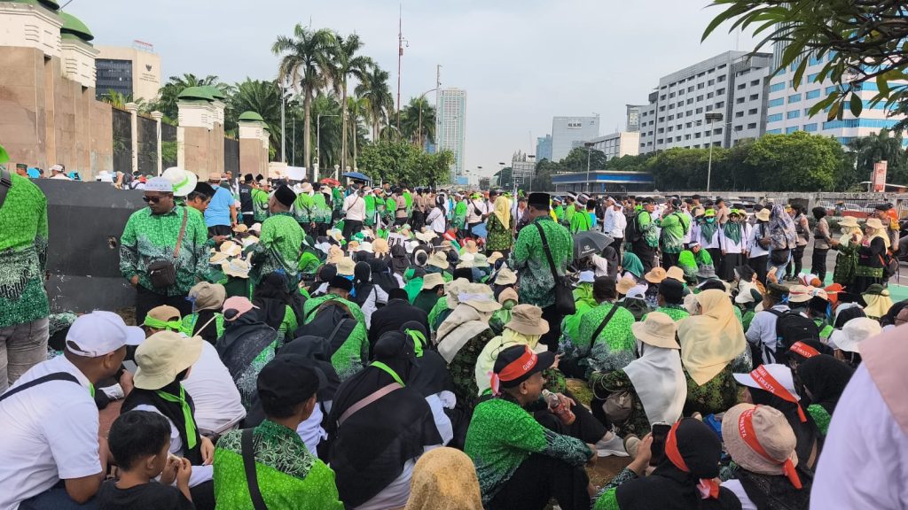 Seribuan guru madrasah swasta se-Indonesia Indonesia melakukan aksi damai, tertib dan martabat Gedung DPR- RI Rabu (11/2/2026) pagi. para guru madrasah swasta yang tergabung di dalam perkumpulan guru madrasah (PGM) Indonesia menyampaikan 5 Tuntutan.