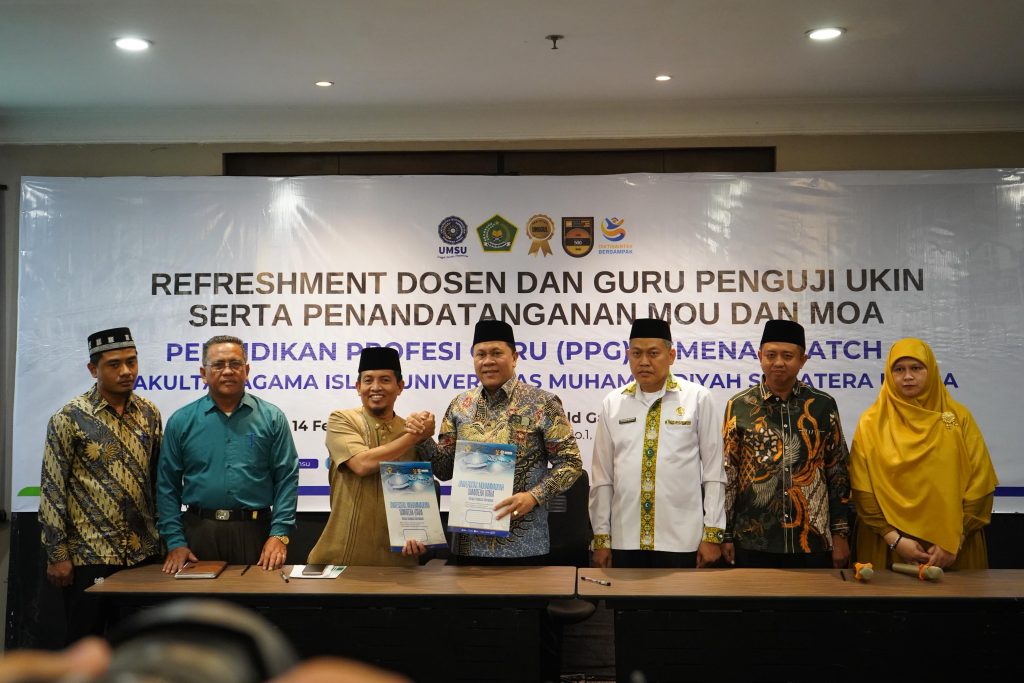 Hal tersebut disampaikannya saat memberi sambutan Refreshment Dosen dan Guru Penguji Ukin Serta Penandatanganan MoU dan MoA Pendidikan Profesi Guru (PPG) Kemenag Batch 4 yang dilaksanakan Fakultas Agama Islam Universitas Muhammadiyah Sumatera Utara, Sabtu (14/02/2026) di Hotel Emerald Garden Medan.